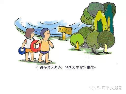 5.對自己的水性要有自知之明,下水后不能逞能,不要貿(mào)然跳水和潛泳,更不能互相打鬧,以免喝水和溺水。不要在急流和漩渦處游泳,更不要酒后游泳。